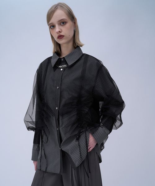 【LADIES】チュールレイヤーチェックシャツ