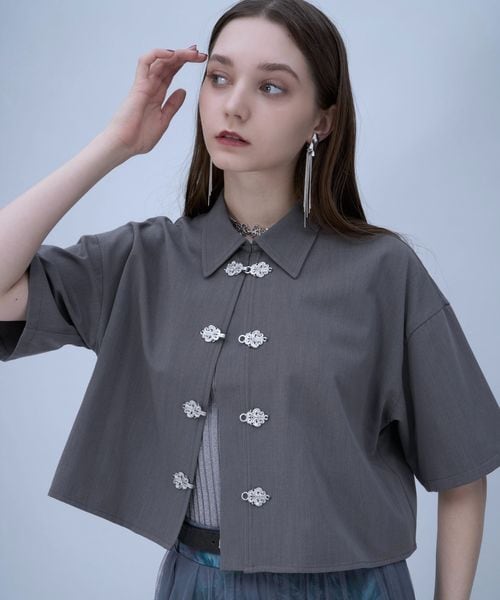 【WEB先行予約 接触冷感/SETUP対応 LADIES】メタルパーツチャイナシャツ