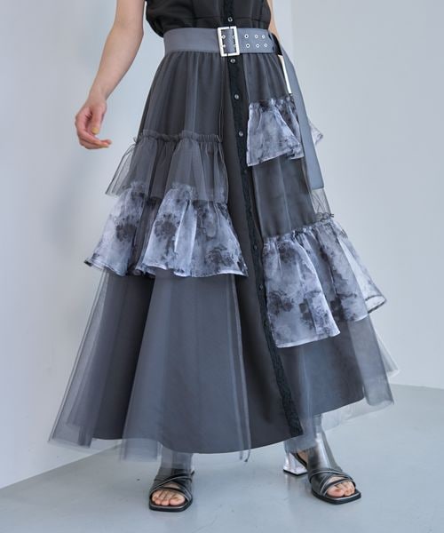 【新色予約中 LADIES】アソートチュールティアードベルトスカート