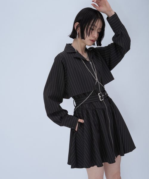 【WEB先行予約 LADIES】ピンストライプZIPミニワンピース