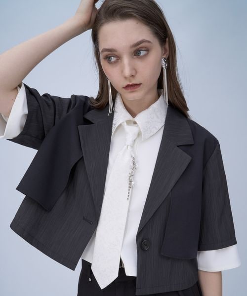 【WEB先行予約 SET UP対応 LADIES】リネンライクショートキリカエジャケット