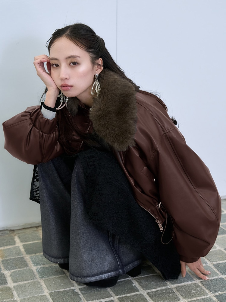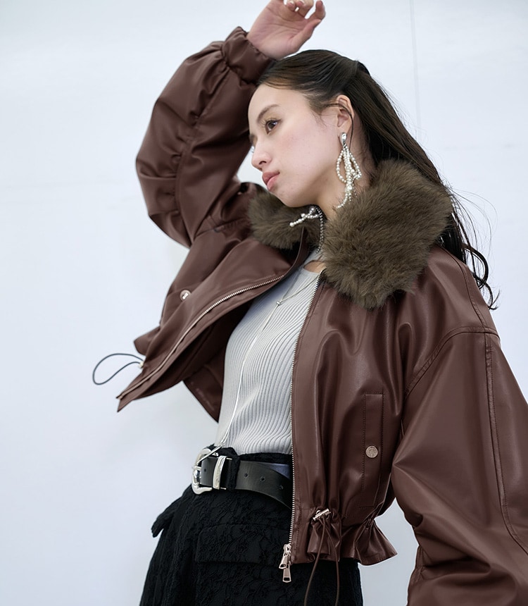 【LADIES】フェイクレザーキリカエシシュウフリースジャケット