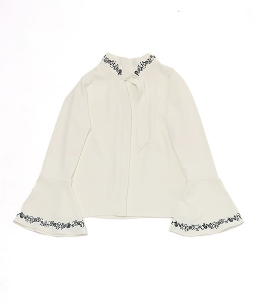 【LADIES】ジャガードキリカエボリュームスリーブブラウス
