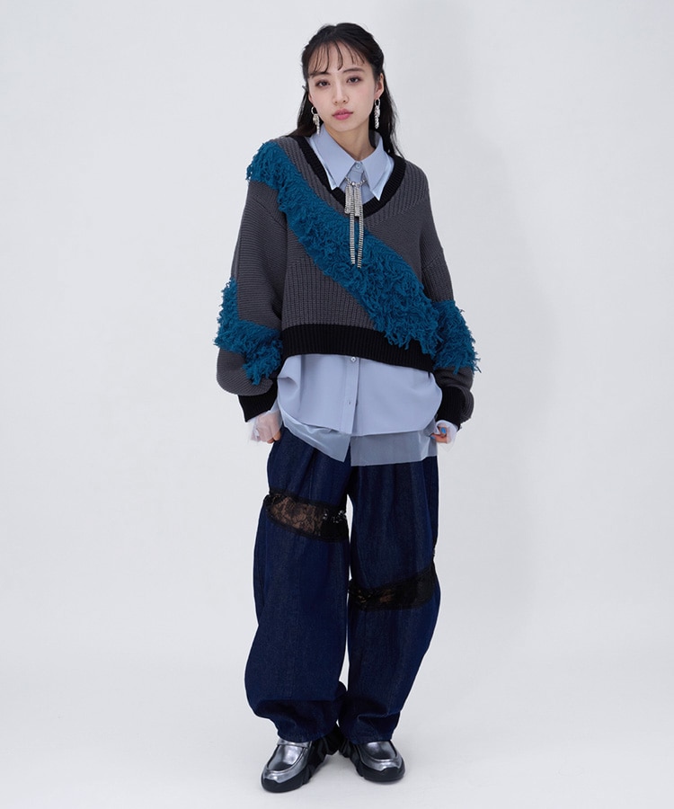 【SET UP対応 LADIES】レースキリカエカーブデニムパンツ