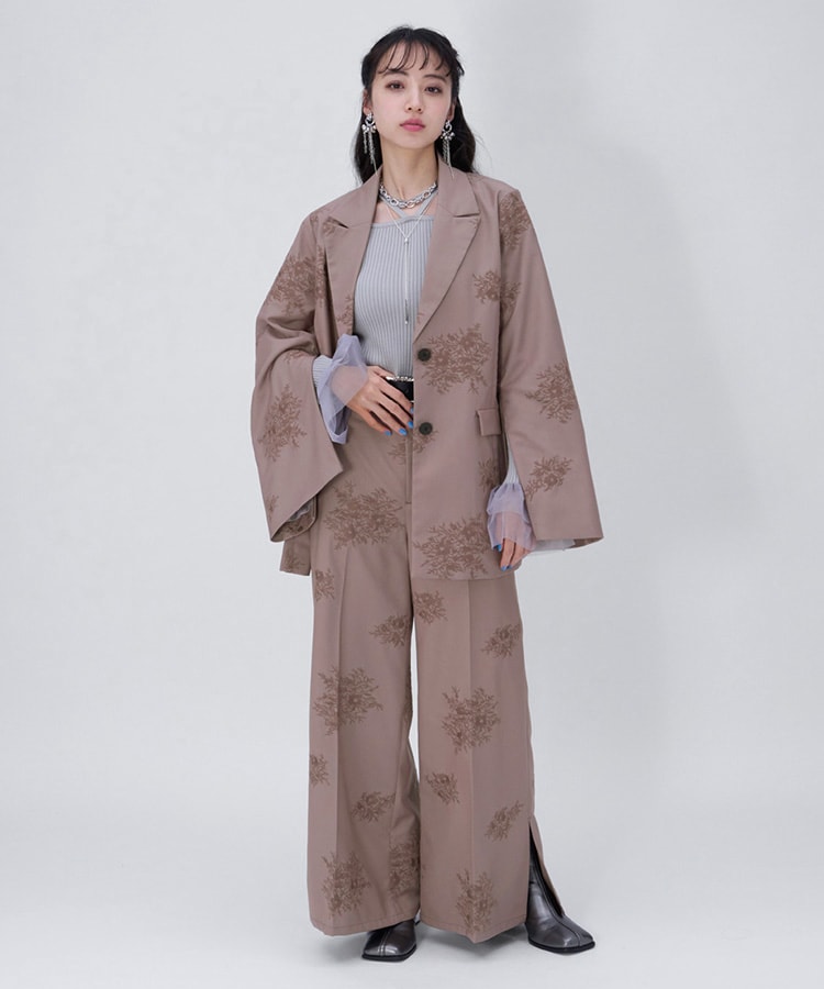 【SET UP対応 LADIES】Flowerシシュウワイドパンツ