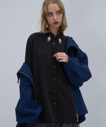 【SET UP対応 LADIES】ジャガードアシメプリーツシャツ