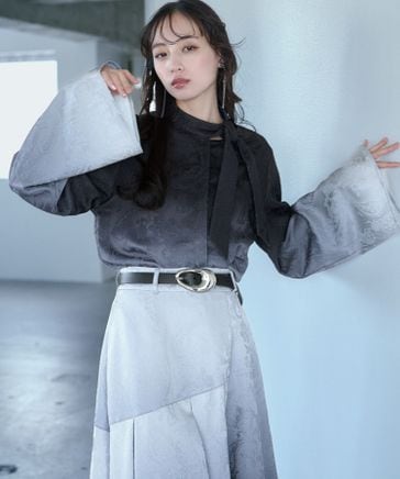 【WEB先行予約 SET UP対応 LADIES】グラデーションジャガードボウタイシャツ