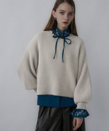 【新色予約開始 LADIES】チャイナカットアウトリブニット