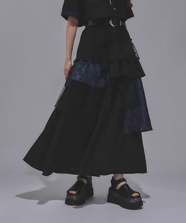【SET UP対応 LADIES】ラメアートJQレイヤーフレアスカート
