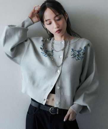 【LADIES】フラワージャガードカタアキニットカーディガン