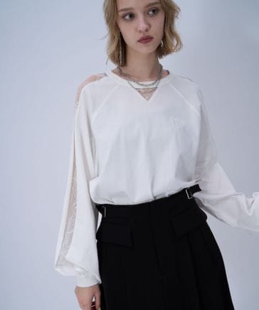 【LADIES】レースキリカエロングTシャツ