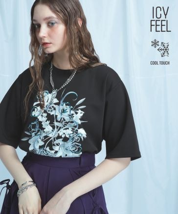 【一部カラー予約受付中! 接触冷感/LADIES】アートフラワーシシュウTシャツ