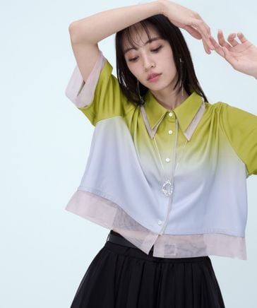 【一部カラーSET UP対応 LADIES】ラメアートジャガードショートシャツ