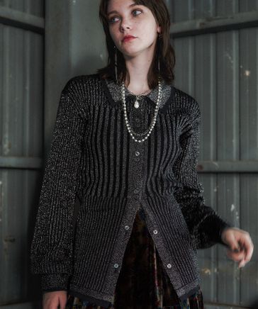 【一部カラー予約受付中!LADIES】レイヤーシャツラメリブニットカーディガン
