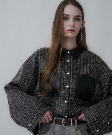 【LADIES】フェイクレザーキリカエミドルシャツ