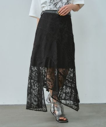 【SET UP対応 LADIES】メッシュジャガードアシメスカート