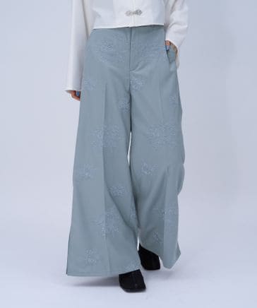 【SET UP対応 LADIES】Flowerシシュウワイドパンツ
