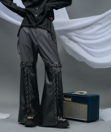 【NANA×HARE/SET UP対応 LADIES】キリカエレースアップフェイクレザーパンツ