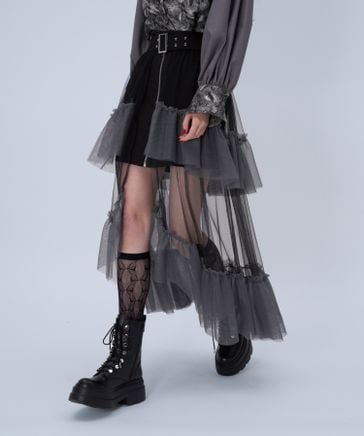 【LADIES】バイカラーチュールベルトスカート