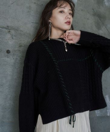 【LADIES】パッチワークショートニットプルオーバー