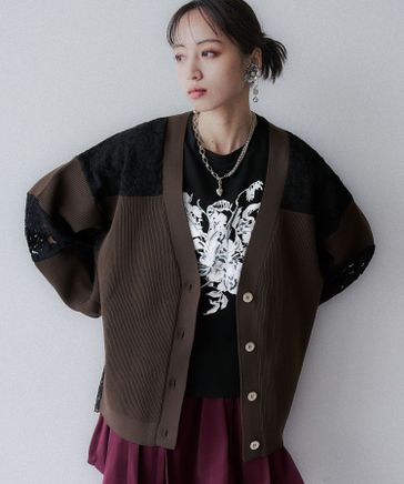 【LADIES】レースキリカエポリニットカーディガン