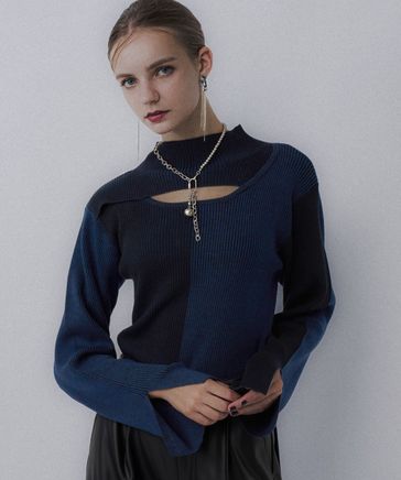 【新色予約開始 LADIES】チャイナカットアウトリブニット