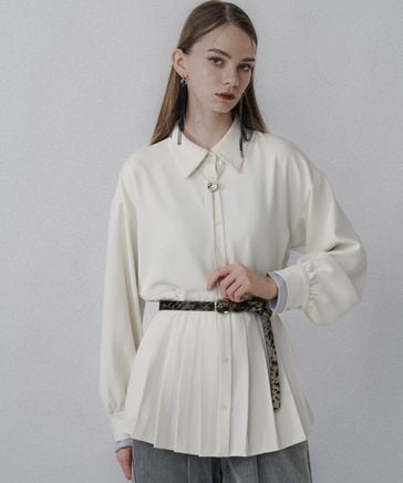 【LADIES】ソデレイヤープリーツシャツ