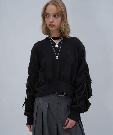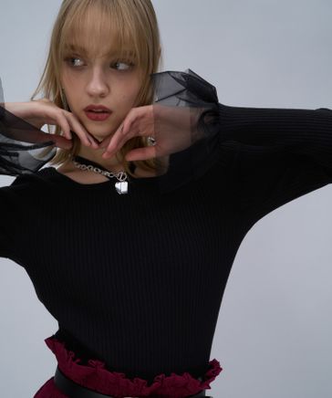 【LADIES】ソデチュールレイヤータイトニットトップス