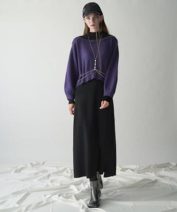 【LADIES】ニットオフショルレイヤードワンピース