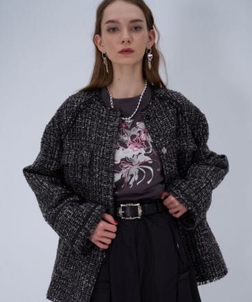 【SET UP対応 LADIES】ラメツイードミドルジャケット