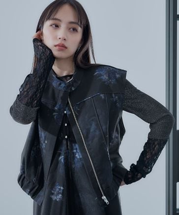 【SET UP対応 LADIES】レースデザインミドルブルゾン