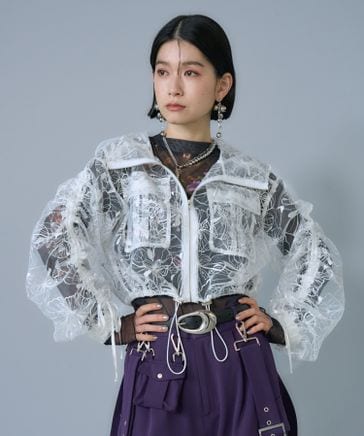 【SET UP対応 LADIES】2WAYフラワーシアーレイヤーブルゾン