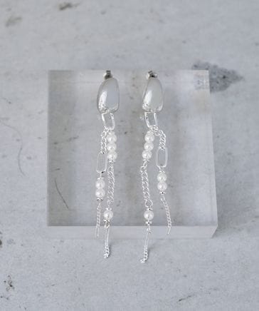 【LADIES】パールミックスチェーンピアス