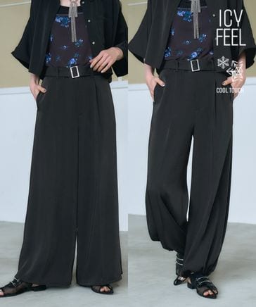 【SET UP対応 接触冷感/LADIES】2WAYトロミワイドベルトパンツ