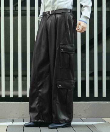 【新色追加予約受付中 SET UP対応】LUXEレザーワイドフレアパンツ
