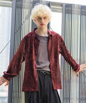 【WEB限定】マルチマテリアルジャガードフリンジシャツ