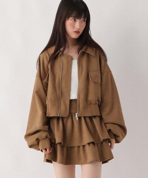 【一部カラー30%OFF】フェイクレザーWZIPショートブルゾン