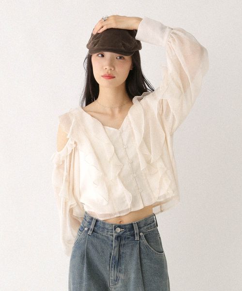 【9/30プライスダウン】ショルダーカットフリルブラウス