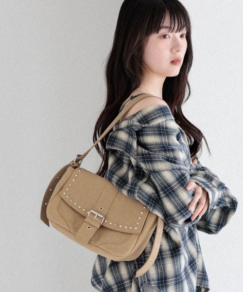 フェイクレザースタッズショルダーBAG