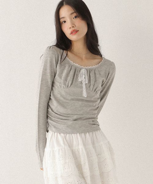 ギャザーレースカットソー