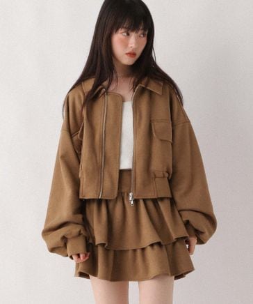 【10/21一部カラー30%OFF】フェイクレザーWZIPショートブルゾン
