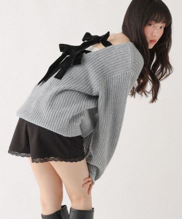 ベロアリボンチュニックニット
