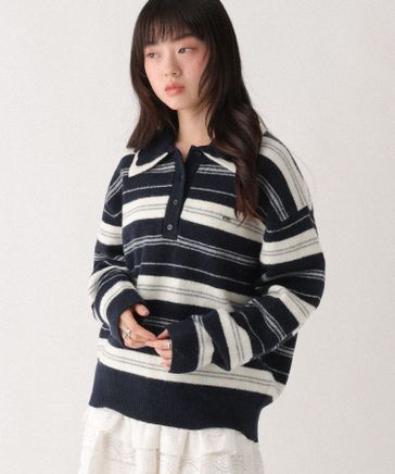 Wカラーボーダーポロニット
