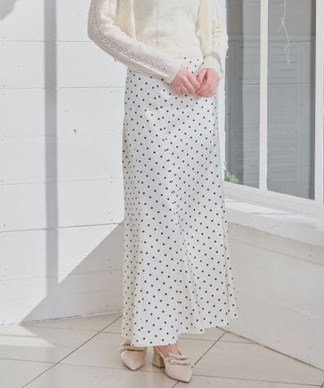 ドットフリルチュールロングスカート