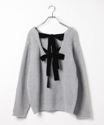 ベロアリボンチュニックニット