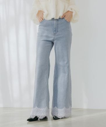 【予約】レースフレアデニムパンツ