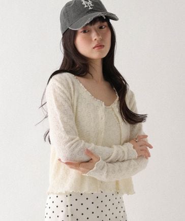 【4/14プライスダウン】透かし編みレースカーデ/キャミ2P