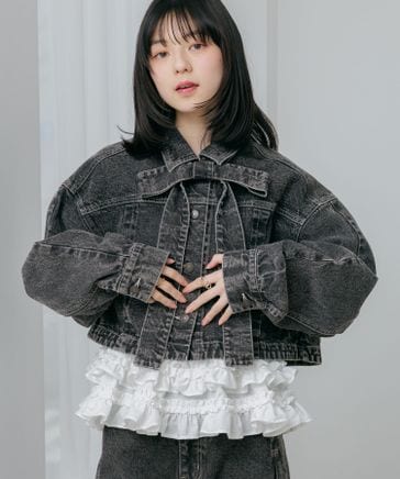デニムリボンショートジャケット