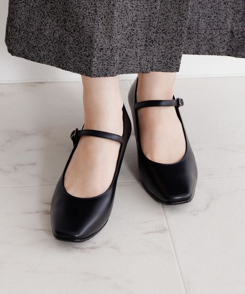 【セレモニー/撥水レザー】5cmヒールスクエアトゥストラップパンプス / 600004