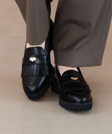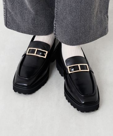 【撥水レザー】トラックソールスクエアバックルローファー/651321